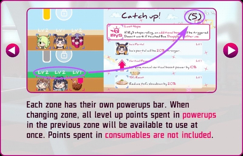 7、每个区域都有自己的能量条。更改区域时,前一个区域中用于强化的所有升级点都可以立即使用。用于消耗品的积分不包括在内。