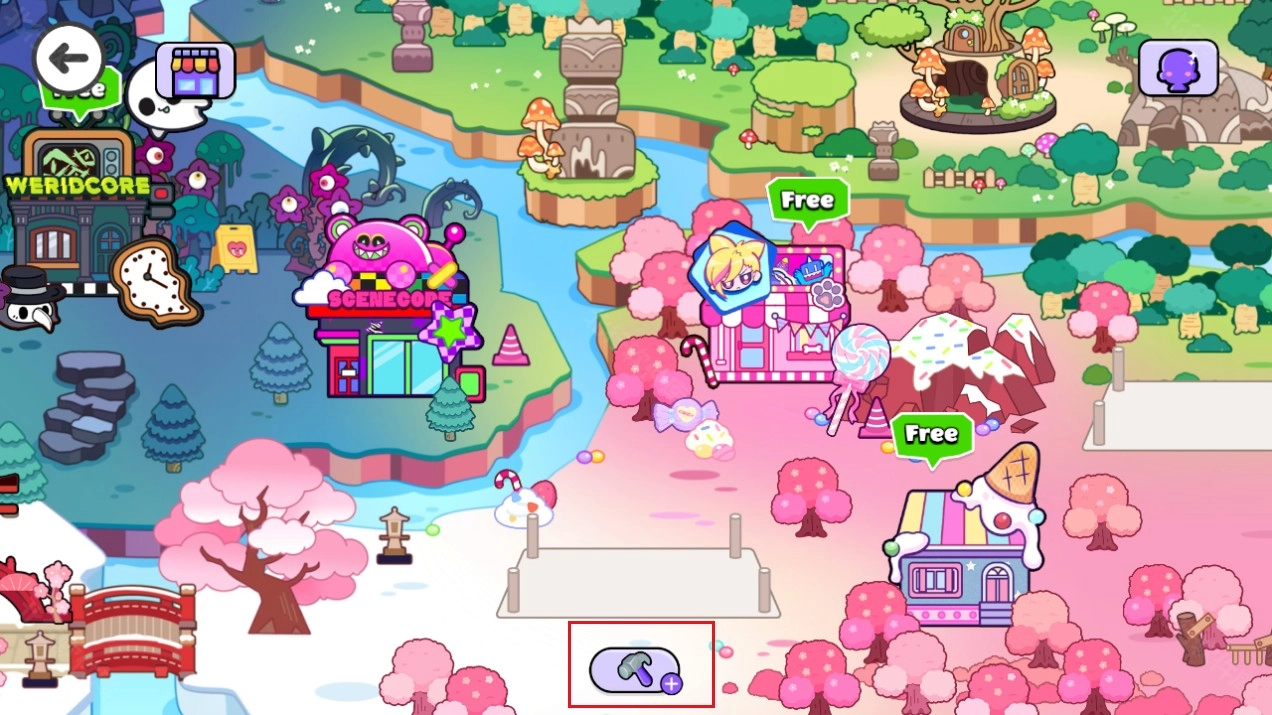 2、来到地图,点击小锤子可以建造新的场景