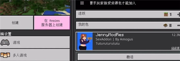 4、在我的包功能界面下即可看到刚刚导入的珍妮模组包,点击右侧的激活选项即可;