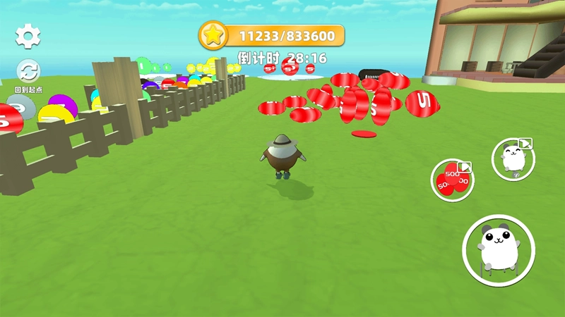 3、场景中有很多豆子需要收集,玩家要灵活控制角色拾取豆子,根据拾取的豆子数量来决定最终的奖励。