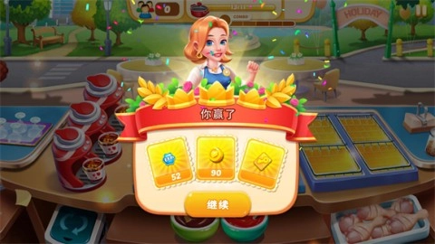 5、完成所有顾客的订单后,就可以顺利通关,拿到金币和钥匙,继续前进!