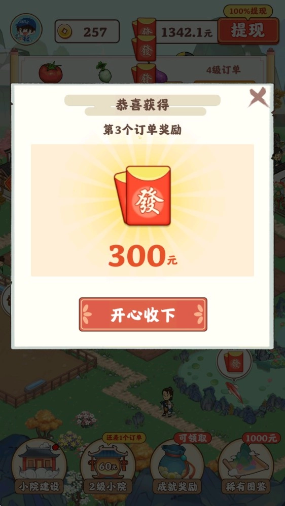 5、完成订单之后,我们就可以获得丰厚的奖励了。