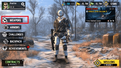 1、安装游戏并进入,点击左侧武器图标所在的一栏进入。