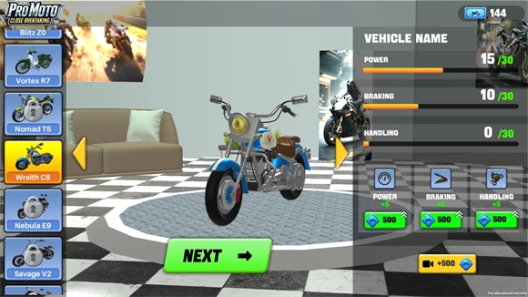 4、升级摩托车性能:在游戏过程中,通过完成超车、获得奖励等方式积累资源,用于对摩托车进行升级。升级项目涵盖发动机性能提升、刹车系统优化、悬挂系统改良等多个方面。