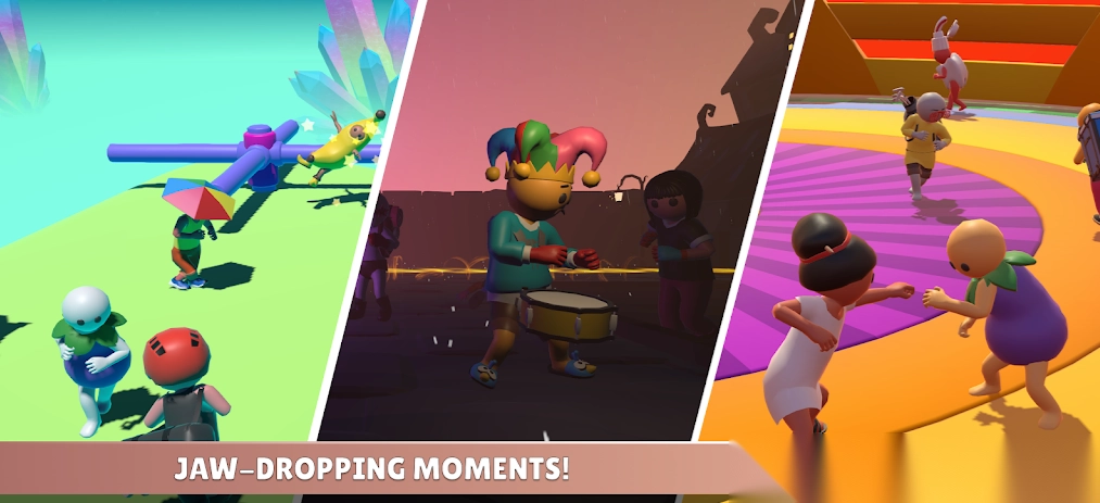 2.采用物理引擎模拟真实击飞效果,配合夸张的卡通特效,让每一次击打都充满爽快感,战斗场面既混乱又欢乐。