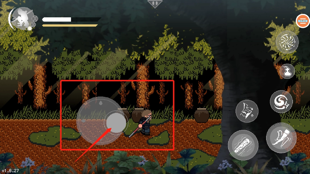 2、屏幕右边的是使用技能,来攻击怪物。
