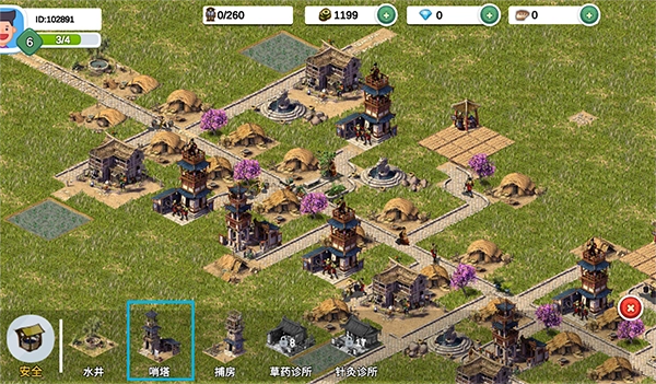 3、有时候城中会发生火灾,需要在安全里修建一些哨塔实时监测城中大小事,以便及时处理,同样哨塔也要覆盖所有住宅。