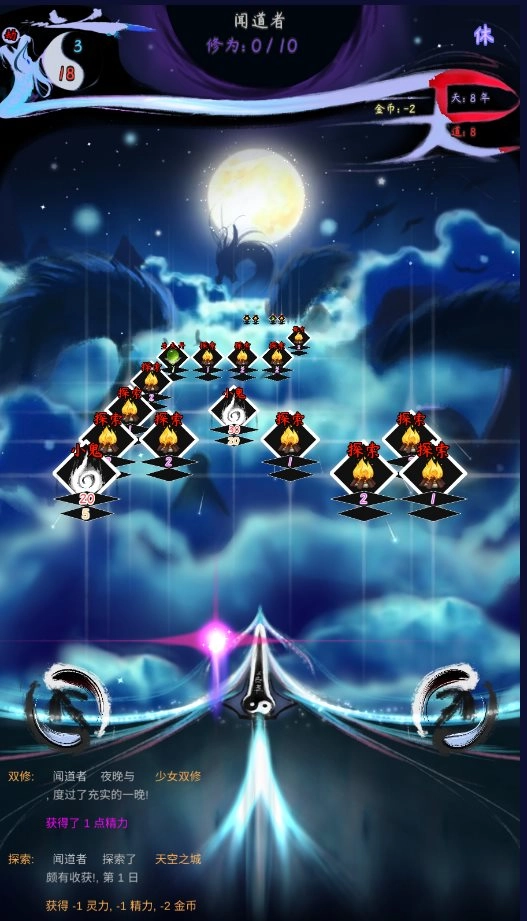 4. 遇到女孩和魅影事件可以与其双修, 女孩增加精力, 魅影增加灵力。