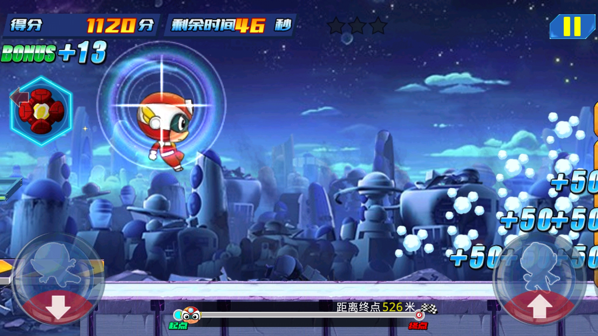 《开心酷跑2 - 超时空保卫战》是基于国产动画《开心超人联盟之超时空保卫战》正版授权打造的跑酷类游戏,于2015年正式推出。这款游戏借助动画IP的影响力,融合创新玩法与社交竞技模式,成功跻身国产跑酷游戏的代表作行列。游戏采用横版2D画面,玩家只需点击屏幕左下角就能控制角色下滑,点击右下角则可控制角色跳跃,且支持二段跳与三段跳,操作十分简单,极易上手。角色设计高度还原动画形象,像开心超人、甜心超人等都在其中,每个角色都具备独特技能,比如自动护盾、三段跳等,玩家通过策略性地选择角色,能够有效提升通关效率。