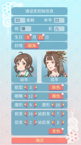 2、编辑长公主的姓名、生日、封地、脸型、眼睛以及发色等角色特征。