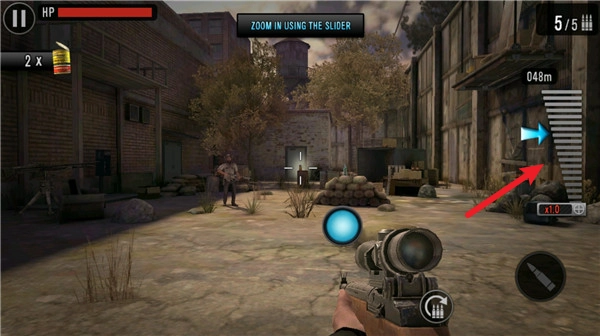 3、战斗中可以切换不同的武器战斗,拖动右侧的按钮即可打开瞄准镜。