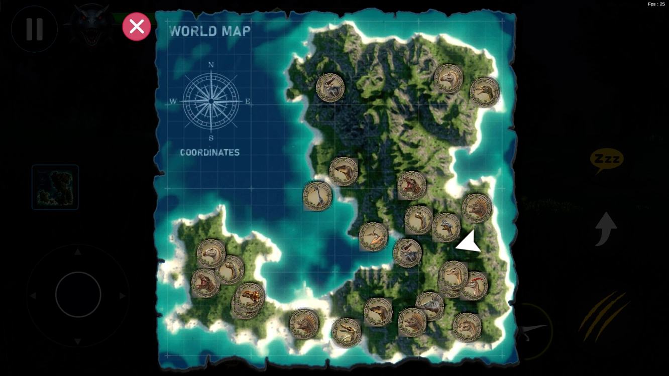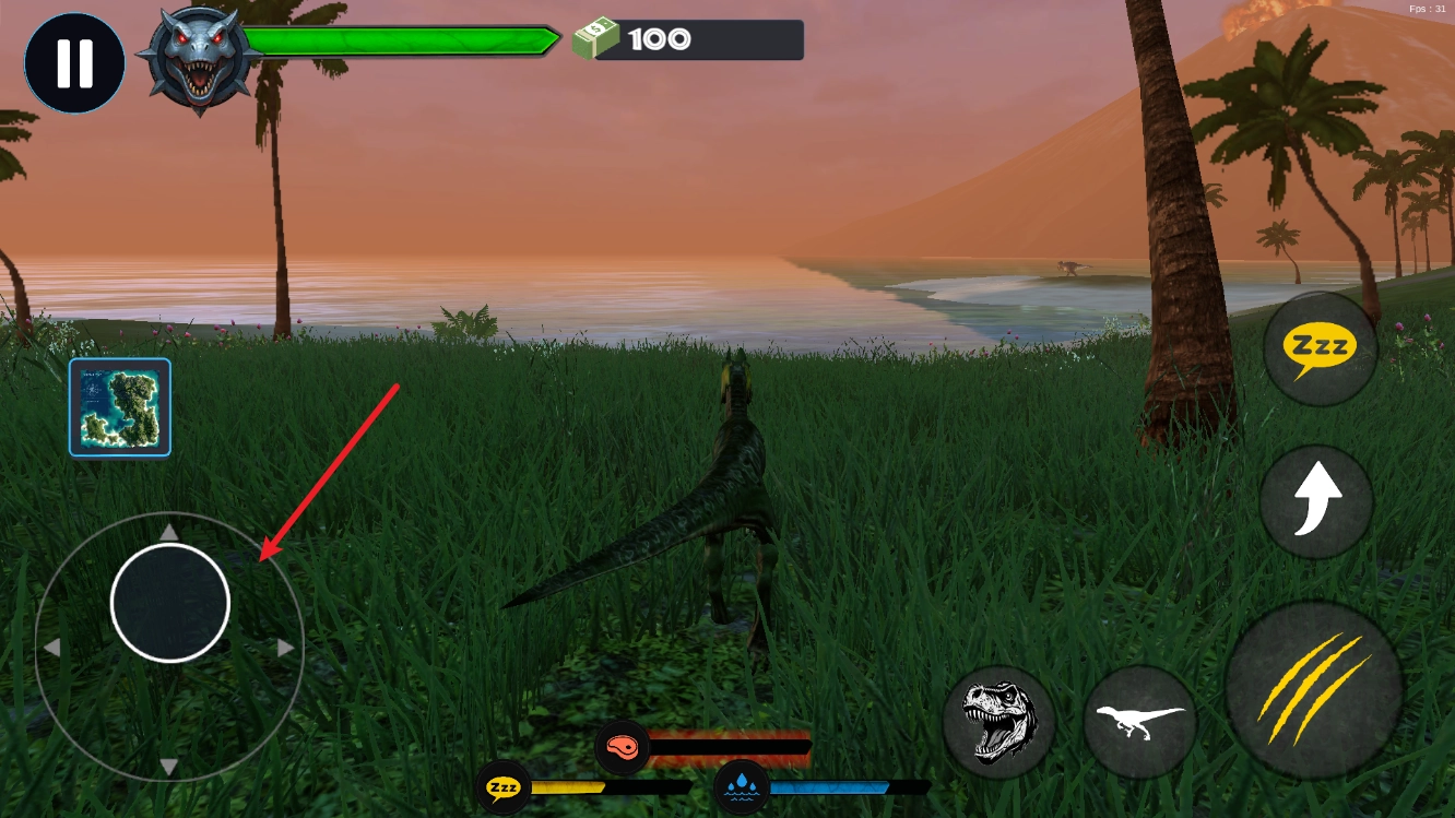 2、进入之后,我们通过左侧的摇杆来控制恐龙移动
