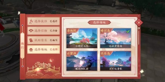 2、写上你的爱的誓言,然后选择场地订婚,如果想要留念的玩家,一定要提前录像;