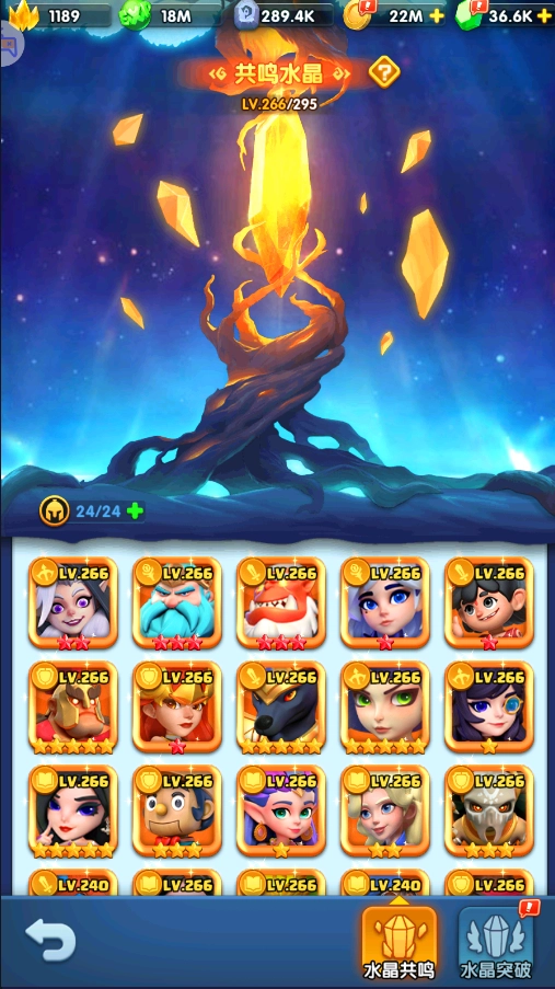 当共鸣水晶等级达到240级(即同时拥有9位等级为240级的角色)时,水晶突破功能将解锁。通过消耗经验与进阶石,不仅能突破等级上限,还可提升全体英雄的属性。