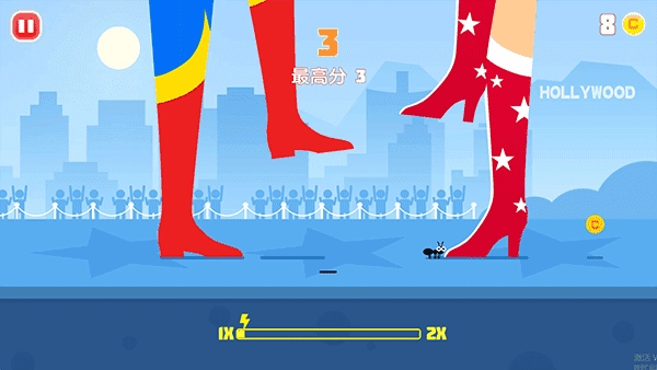 在游戏里,你化身成一只游荡在好莱坞街头的小虫!为了攒够小金币解锁小伙伴,这只小虫只能穿梭在熙攘的人潮里捡金币,再把它们运回自己的蚁洞。关键是,你得躲开所有人的脚,不然会被踩成扁片哦!而且事情肯定没那么简单,你还得提防各路超级明星的大脚,别让他们把你踩扁。当你晃悠在洛杉矶街头,抬头望着好莱坞山顶,身边人来人往……活着怎么这么不容易呢?不多啰嗦了,感兴趣的朋友快来试试吧!