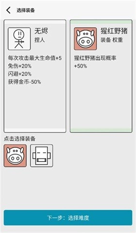 3、装备选择完成后,点击“下一步”选择你希望挑战的难度。