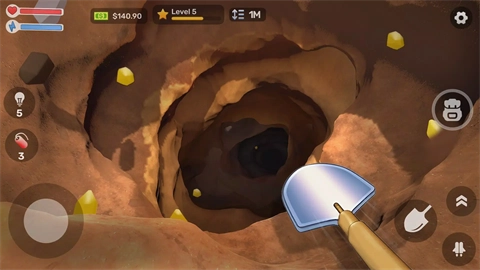 3、玩家可以使用金币来升级挖掘工具,例如铲子和手套,提高挖掘速度和效率。解锁更深层次的挖掘区域。