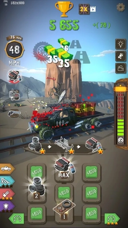 僵尸列车中文版游戏介绍 在“僵尸列车”里,你将驾驶列车穿梭于僵尸横行的荒芜轨道之间,这是一款融合了动作、策略元素与无限趣味的休闲佳作。丧尸在各处潜伏,你的目标是在残破的场景中持续前行,每行进一英里就能获取金币,进而不断升级你的座驾来确保生存。