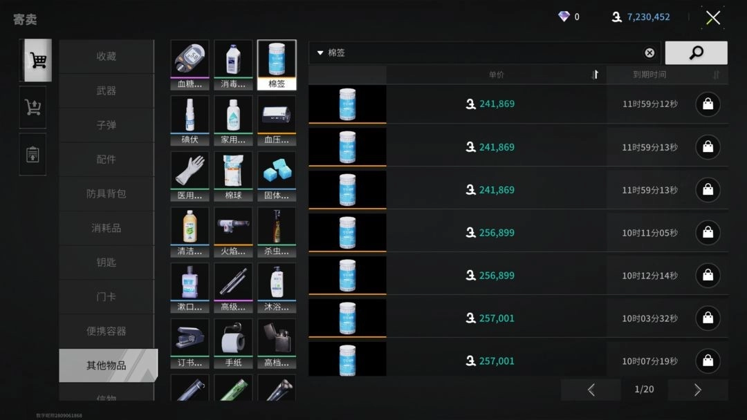 作业箱和棉签在游戏中爆率不高,比较稀少,如果需要的话,还是从寄卖市场采购比较好。其中,作业箱做任务会给许多,每天可以在交易市场购买一个,如果不是急着冲建筑等级,其实也并不是非常缺,棉签在刷医疗物资的地方(比如巴夫工厂废水池)会刷新,但爆率也不高。这两件商品在交易市场的售价高昂,但好在用量较少,可以通过摸两局金来消费购买。