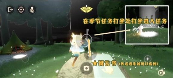 3、在姆明故事书处领到任务后,打坐进入姆明谷。进入姆明谷后我们会变成一只小蝴蝶,操控小蝴蝶跟着迪琪走完整段回忆,如果跟丢了就点一下蝴蝶,会有蓝色先祖指引标记出现,走到小屋过完剧情就可以完成第一个任务。