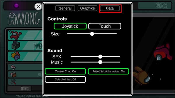 2、打开设置列表后,玩家点击右上角的“data\\";
