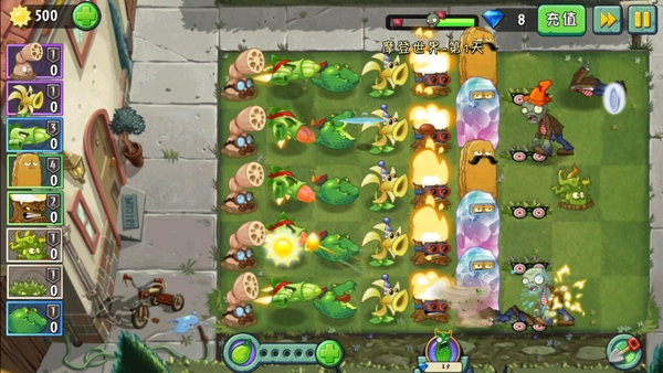 3、自由搭配数十种植物,把植物种在花园的不同地方,对抗僵尸王还是需要战斗力彪悍的植物。