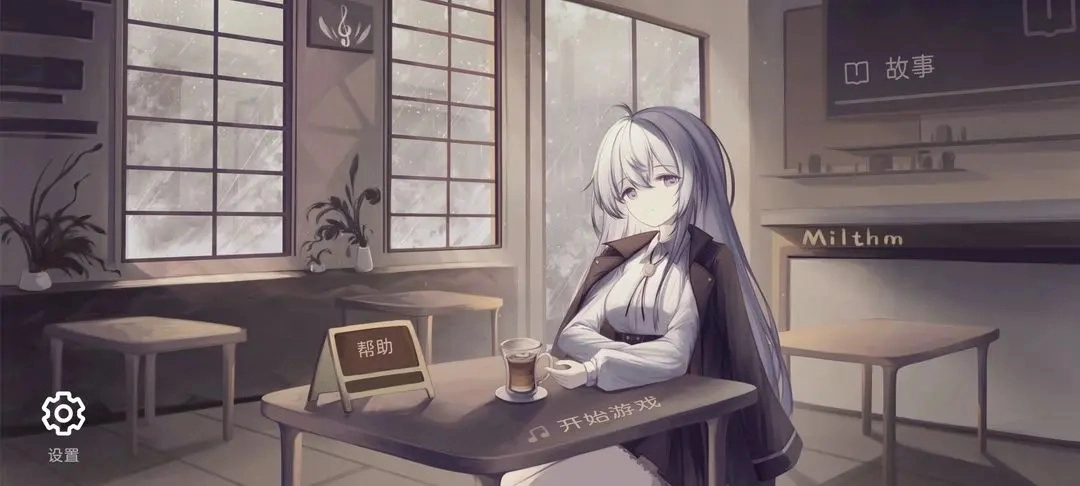 设置可以帮助玩家调节游戏内设定,帮助可以让玩家了解和回顾游戏的特色内容,故事可以让玩家了解世界观,同时也对主线解锁有一定的帮助,点击开始游戏可以进入曲目选择界面。