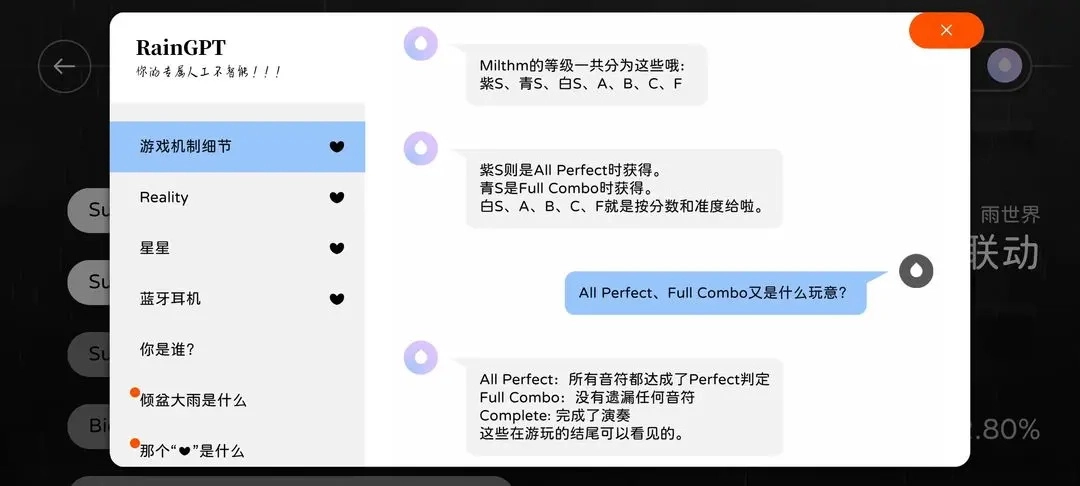 此外,玩家可以点击右上角的RainGPT,里面含有大量对新手玩家有帮助的说明,这里不再赘述。