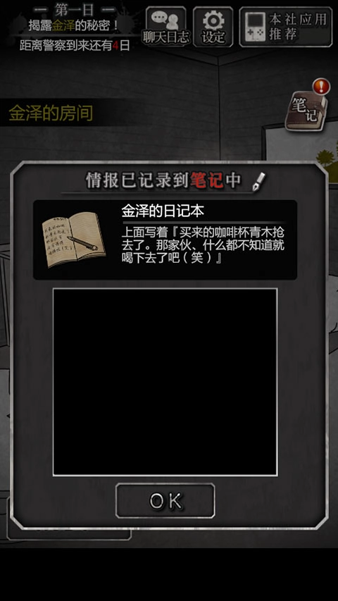 5、调查左上书桌,获得证物“金泽的日记本”;