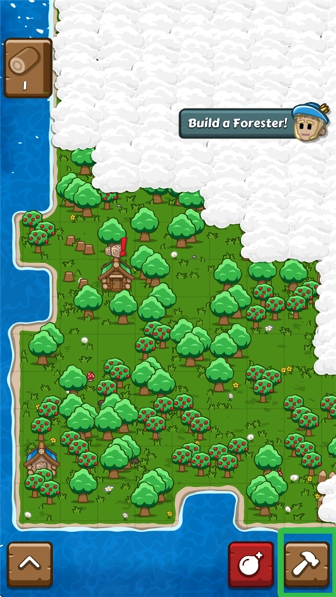 2、拥有足够木材后,点击锤子,可生产各种建筑。
