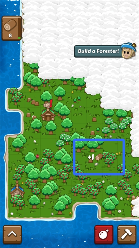 1、点击树木能够进行砍伐操作,点击果树则可以获取果实。
