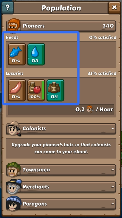 7、显示了居民目前需要的东西以及奢侈品。