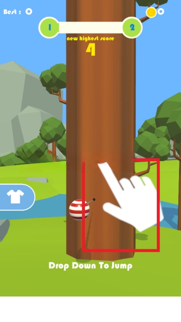-点击屏幕以增加力,将球向上扔,并将球固定在棕色部分。