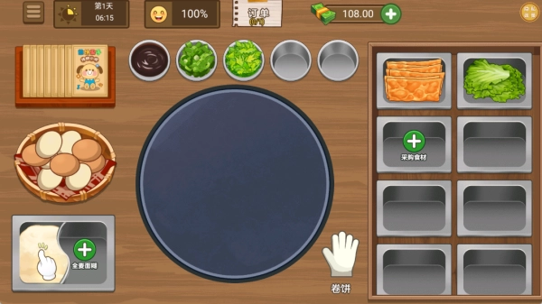 1、玩家将化身为煎饼摊摊主,一开始只有一个简易的摊位,经营的核心目标是制作出美味的煎饼来满足客人们的需求,进而积累资金对摊位进行升级。