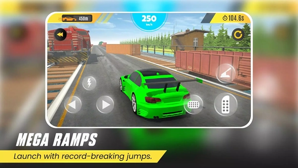 4.在跳跃坡道上,玩家需要在合适的时机点击跳跃按钮,让赛车腾空而起。