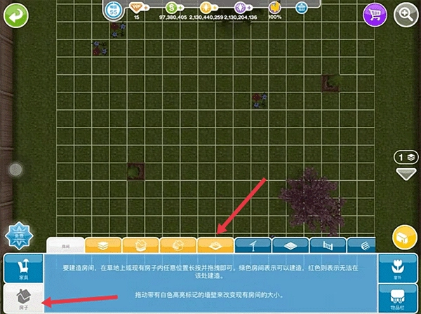 7、在格子上长按并拖拽出你需要的房间大小即可,建造好房间大小后你还可以在商店中购买各种装饰品装修房间