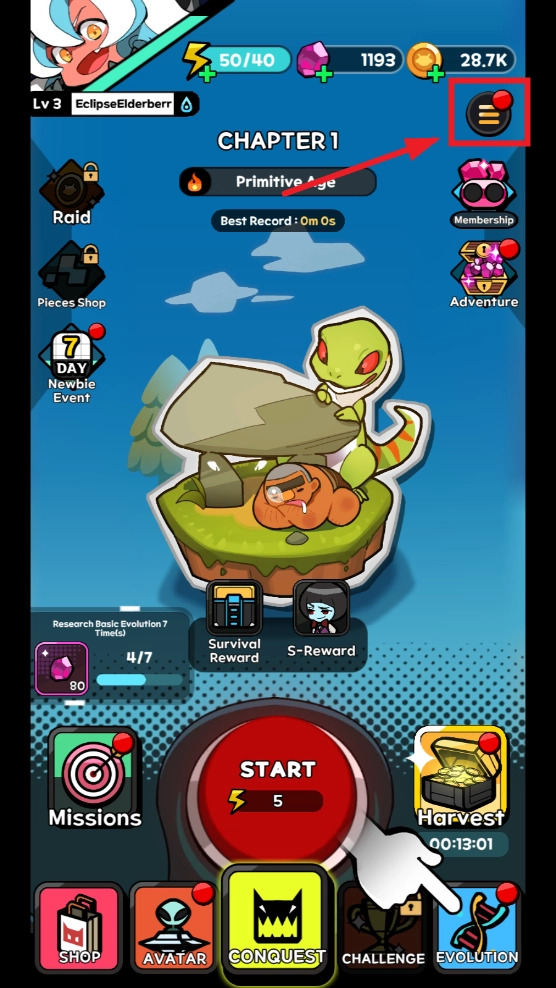 完成教程后,进入主界面,点击下方中间的图标
