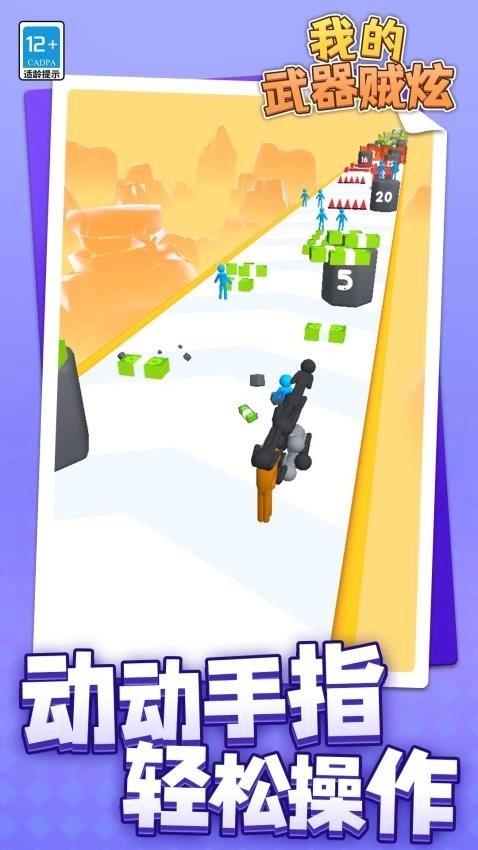 《我的武器贼炫》是一款十分精彩的休闲跑酷游戏。游戏里,玩家得持续提升武器的攻击力,跑酷时要留意具体物品,也得关注蓝色橡皮人的位置,把这些元素结合起来,就能加快武器升级,进而达到目标等级,用武器去攻击最终的超级BOSS。行动中选对更关键的方法,就不会出问题,还能留意到高效的限定情况,武器在这种条件下能更快发挥作用。路上会有很多钞票,只有成功通过相关挑战环节,才能收集它们。要是你也对这款游戏感兴趣,就快来试试吧!