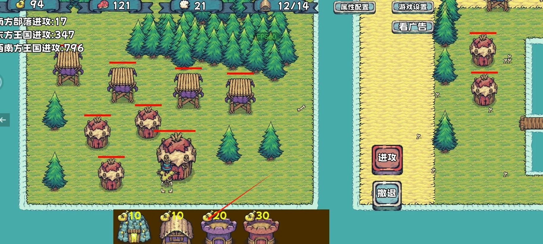 3、所有的自己建筑和小兵都可以双击查看其属性,有些建筑可以升级加强,建造好所有的建筑物后点击进攻,开启战斗。