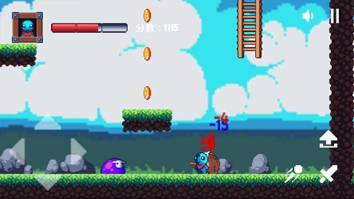 在游戏里得清除那些拦路的敌人,把boss击败后碰到旗子就意味着通关啦,道具还能提升攻击力和补充血量呢。