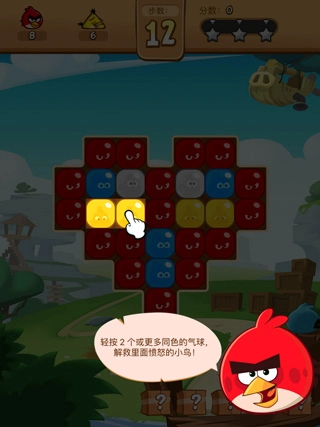 2、轻按2个或更多同色之间的气球,就能解放出里面愤怒小鸟了