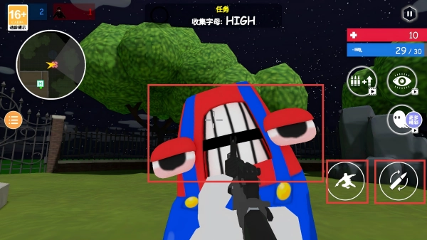 2、进入关卡后,任务是收集字母【HIGH】,按小地图找字母位置,靠近并拾取地面上散落的道具,让我们在执行任务过程中更加高效。