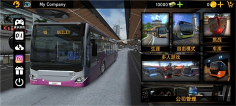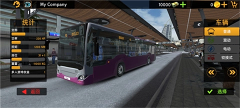 5、选择一辆最适合自己的车辆,游戏内提供多种常规/柴油、混合动力、电动和铰接式巴士可供选择,每种公交车的属性都不相同,当然需要耗费的金额也不相同,你的初始金币只有10000,你需要通过不断的接送顾客,扩大自己的公司规模才可积攒到更多的金钱哦!