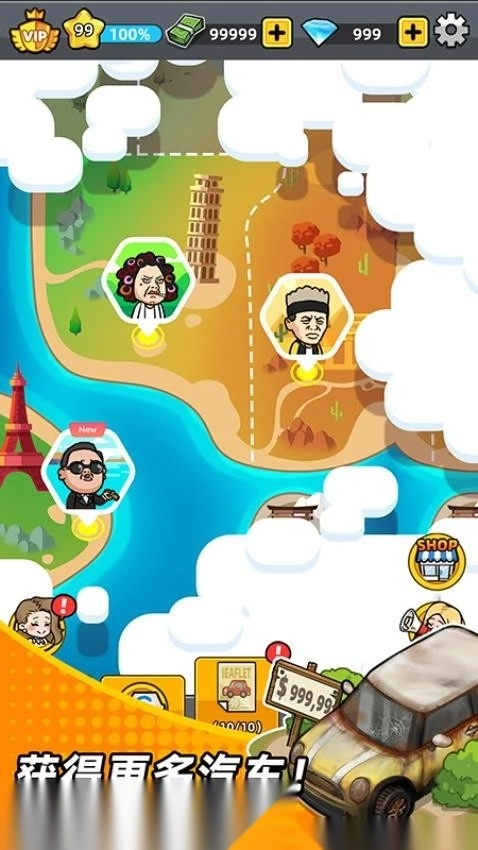 汽车类型逐渐解锁,尽可能收购更多不同车型。