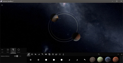 宇宙沙盘2汉化版为玩家构建了一个以太阳系为核心的沙盒宇宙,游戏精准的天体物理模拟系统。玩家可依据个人偏好,在浩瀚宇宙空间中自由布置各类天体,直观观测引力间的相互作用,既能展开创意十足的宇宙构建,也能进行充满破坏感的天体实验,见证独特的天文现象演变,打造出独属于自己的个性化宇宙世界。
