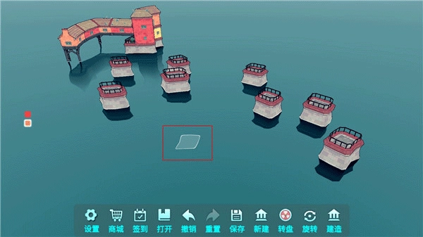 3、当水面上出现如下图标识时,玩家可以通过点击来进行水上建筑的建造