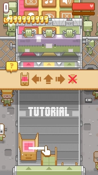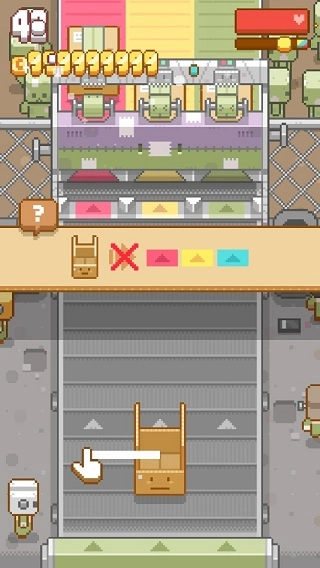 一款超可爱的像素风格的休闲模拟游戏,游戏中传送带上有着不同颜色的箱子,