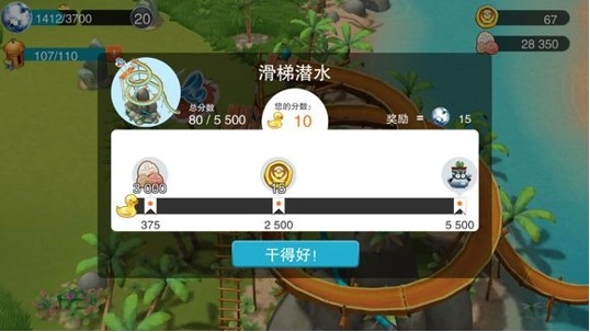 4)把这座小岛建设成度假的乐园,还能和更多小黄人开展愉快的互动。