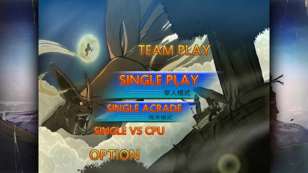 1、启动火影忍者究极风暴4手机版,进入游戏主界面,该界面包含【TEAM PLAY】联机模式、【SINGLE PLAY】单人模式、【SINGLE ACRADE】闯关模式与【SINGLE VS CPU】人机对战模式,玩家可根据自身需求选择,本次操作以【单人模式】为例。