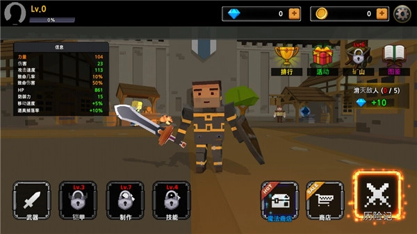 4、随着关卡的推进,玩家还可以解锁更多武器技能,不断升级强化,让自己变得更加强大,最终称霸整个小镇。